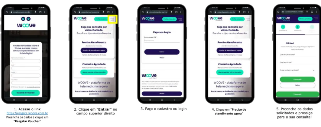Consultas e orientações médicas online, 24h por dia e com diversas especialidades através da nossa plataforma de cuidados à distância. Com o Clube Saúde da Woove, você poderá oferecer aos seus parceiros ou clientes uma jornada que torna a saúde mais simples, pessoal e acessível para todos, além de benefícios como descontos em farmácias, pronto atendimento online e preços mais acessíveis em consultas.