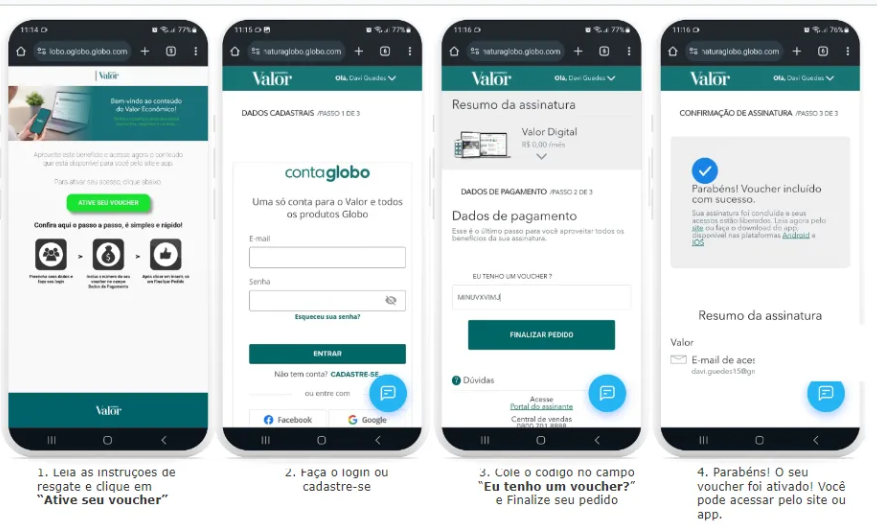 Após o recebimento do voucher, o cliente tem o prazo de 30 dias corridos para ativar o código no ambiente do Valor Econômico
