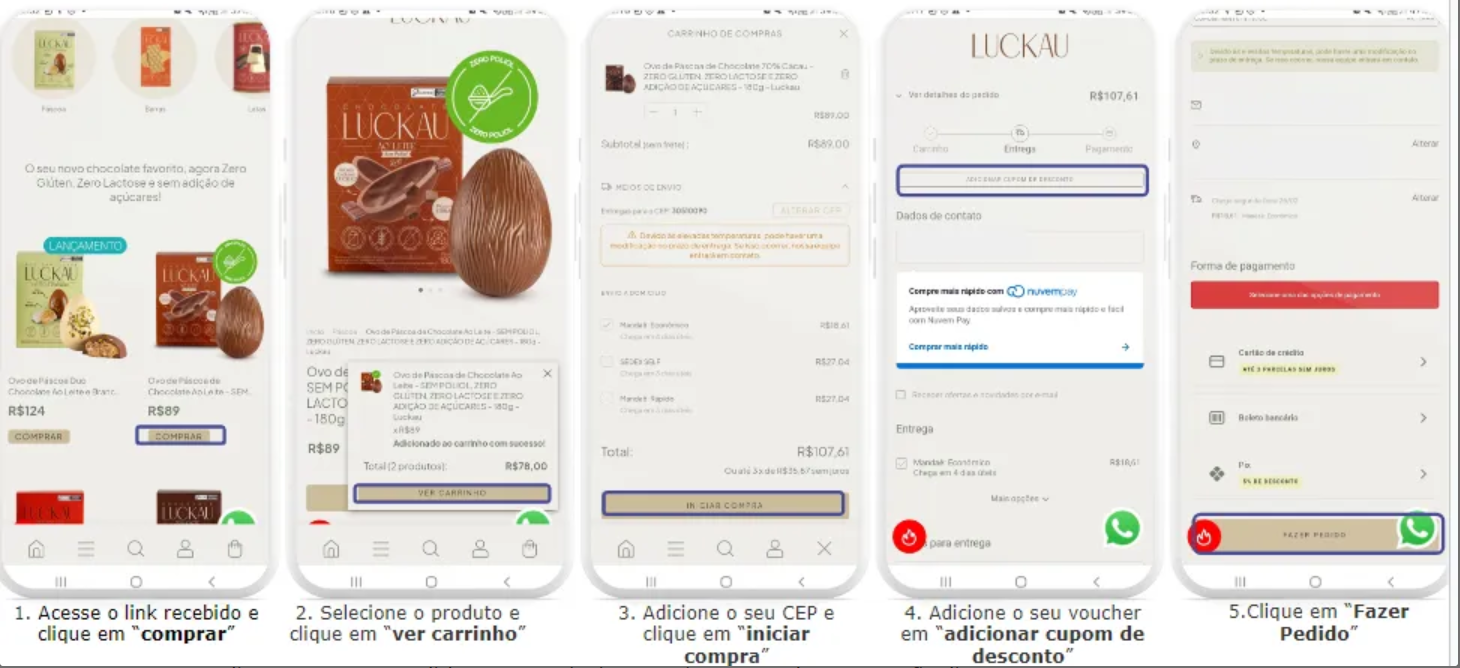 1. Acesse o site https://seu.bz/luckau e escolha seus produtos e clique em "Comprar";