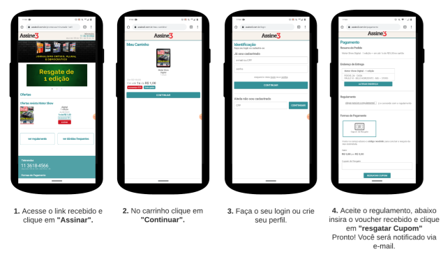4. Aceite o regulamento, abaixo insira o voucher recebido e clique em "Resgatar Cupom" Pronto! Você será notificado via e-mail.