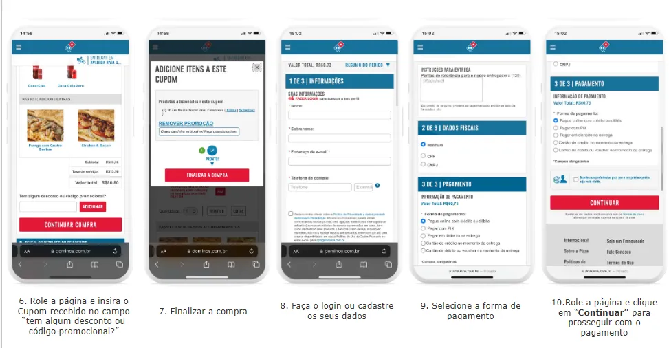 Após o recebimento do voucher, o cliente tem o prazo de 30 dias corridos para ativar o código no ambiente do Domino’s Pizza