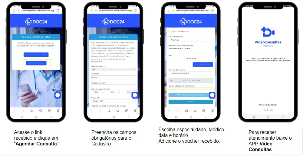 A DOC24 é uma empresa focada em Telemedicina, que através do uso de tecnologia e conhecimento do comportamento humano. É uma solução de consulta/orientação médica através de vídeo, cujo objetivo é facilitar e ampliar o escopo de cobertura no relacionamento dos profissionais de saúde com seus pacientes, através do uso de tecnologias de informação e comunicação.